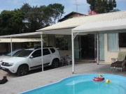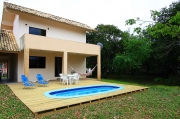 Linda casa em dois terrenos, com piscina, quadra de volei e ar condicionado em todos os quartos! Um dormitório com cama casal box e ar-condicionado split; Uma suíte master com cama king Size, tv com Sky, secador de cabelo, banheira de hidromassagem, sacada e ar-condicionado split; Uma suíte com cama Queen Size, sacada , tv, secador de cabelo e ar-condicionado split; Uma suíte no mesanino com cama Queen Size, uma cama de solteiro, três colchões avulsos de solteiro, secador de cabelo e ar-condicionado split; Mezanino com bela vista para piscina e escada caracol que leva para a suíte do mezanino; Lavabo no piso térreo, banheiro social, banheiro na área de festas, sala com TV 42 polegadas, SKY HD, DVD, aparelho de som,internet wireless e ar-condicionado split; Cozinha completa com microondas, forno elétrico, batedeira, liquidificador, freezer... Amplo estacionamento no pátio sem cobertura para 04 carros, Churrasqueira e redes de descanso, alarme monitorado, cadeiras de praia e guarda-sol. Aceita-se animais de estimação, Lavanderia com máquina de lavar e secadora de roupas. Casa de bonecas não disponível para utilização!